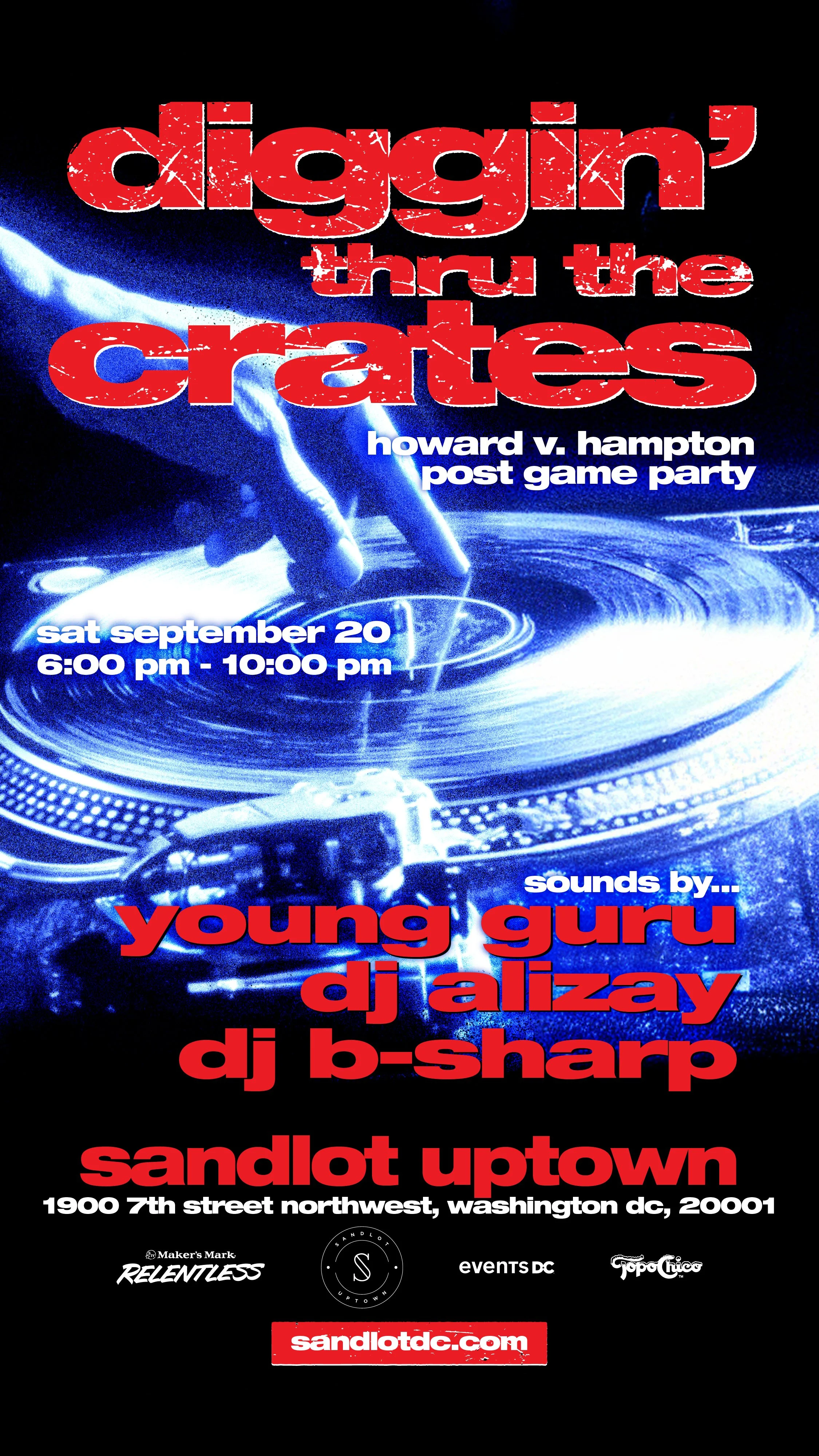 Diggin' thru The Crates: Young Guru Live! Saturday, September 20, 2025 6:00 PM 10:00 PM Sandlot Uptown 1900 7th Street Northwest Washington, DC, 20001 United States (map) Google Calendar ICS CLICK HERE FOR TICKETS